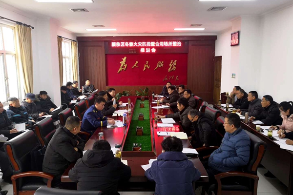 1月15日上午,颍泉区政府召开2019年第一季度消防工作联席会暨市政府消防工作考核迎检会,各镇、街道办事处、园区管委会分管负责同志、区消防安全委员会成员单位相关部门主要负责同志参加会议,会议由区政办副主任王平原主持,区委常委、常务副区长刘万和出席会议并作工作安排部署。