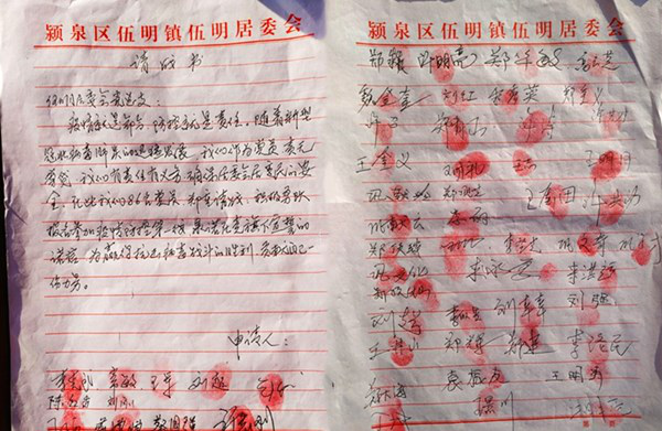 疫情防控阻击战打响以后,伍明居委会召开了党员大会,王景川主动请缨并组织和号召广大党员,广大党员纷纷请战,向村党总支上交“请战书”,要求加入到联防联控行动中,“请战书”上的一个个红手印,是大家坚定信仰的真实写照。