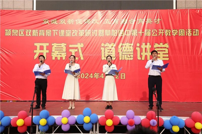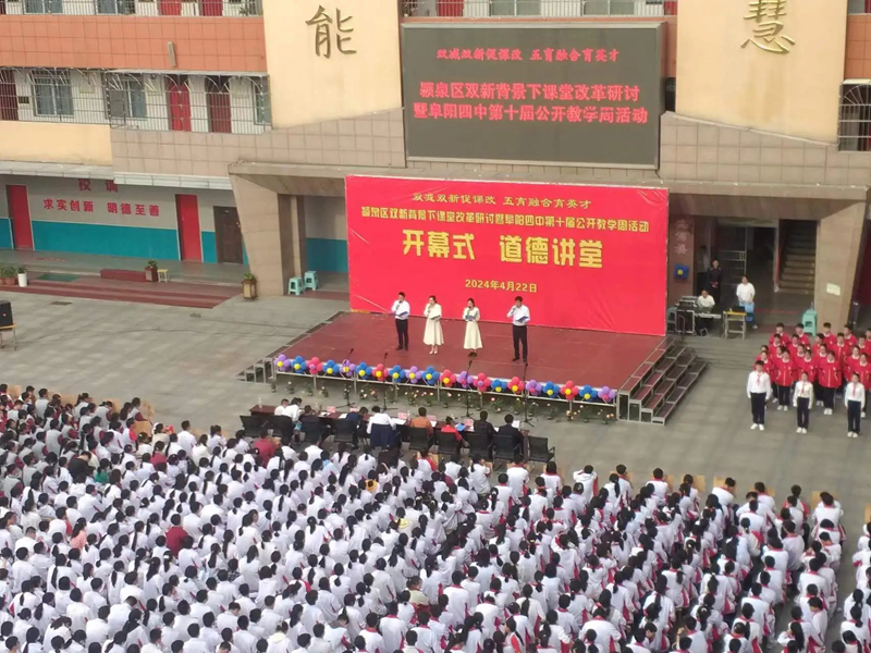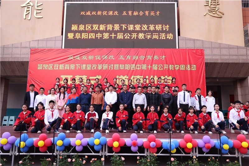 4月22日下午,颍泉区双新背景下课堂改革研讨暨阜阳四中第十届公开教学周活动开幕仪式在校园广场隆重举行。