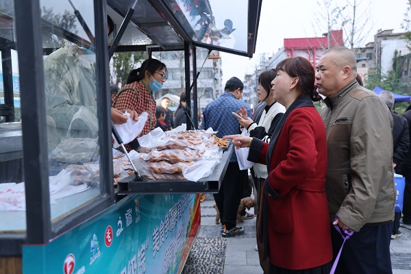 活动现场人头攒动,气氛热烈。美食专区成为人气最旺的区域之一,马大娘麻花酥脆可口、源中源卤香牛肉回味无穷、蚕丝大馍香甜筋道、田三卷馍风味独特,各色美食摊位前游客络绎不绝,品尝地道皖北风味。农产品展销区则带来了本地优质的蜂蜜、红薯、脆柿等农特产品,助力乡村振兴与消费提升。
