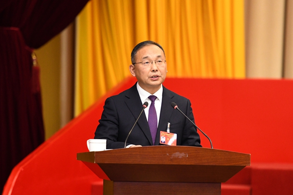 在热烈的掌声中,区人民政府区长时新向大会作《政府工作报告》。报告共分四部分:一、2025年工作和“十四五”时期发展回顾;二、“十五五”时期主要目标任务;三、2026年工作安排;四、加强政府自身建设。