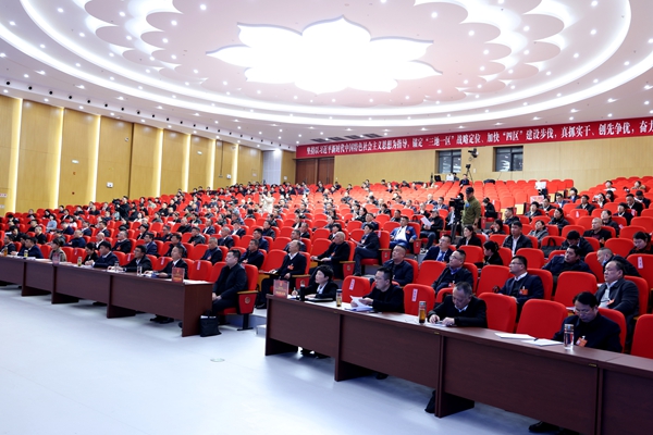 会场庄重简朴、气氛热烈,悬挂的“坚持以习近平新时代中国特色社会主义思想为指导,锚定‘三地一区’战略定位、加快‘四区’建设步伐,真抓实干、创先争优,奋力谱写现代化颍泉篇章!”的标语,鼓舞人心,催人奋进。