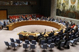 8月5日,在位于纽约的联合国总部,各方代表就联合国安理会针对朝鲜洲际弹道导弹试射实施新制裁的决议表决。新华社 图