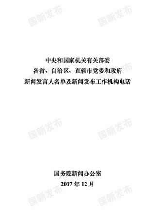 重磅!中央国家机关和地方2018年新闻发言人名录发布