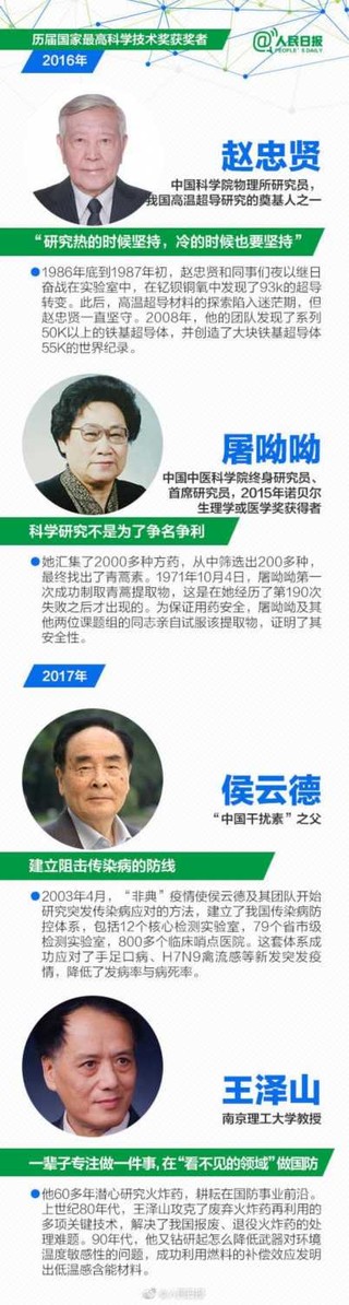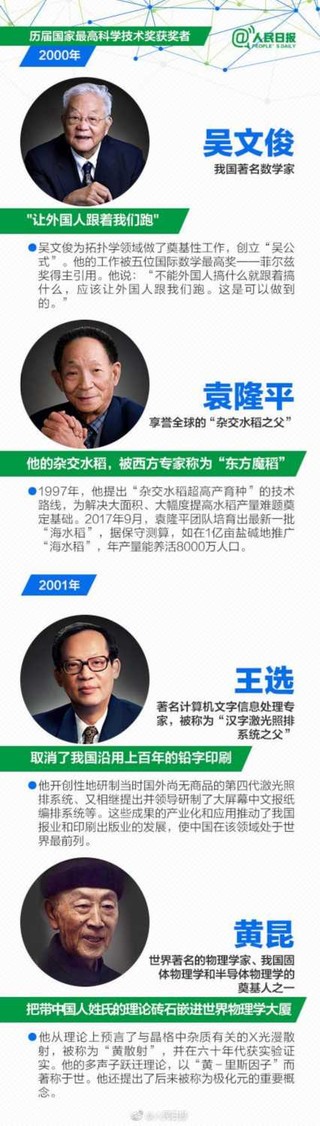 今天,2017国家科学技术奖励大会开幕。国家最高科技奖,是中国科技界的最高荣誉。自2000年设立至今,18年,共有29位科学家登上了我国科技界最高领奖台。今天,一起转发,致敬,中国科学家!加油,中国科研事业!