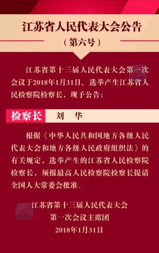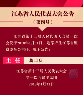 蒋卓庆当选江苏省监察委员会主任,夏道虎当选江苏省高级人民法院院长,刘华当选江苏省人民检察院检察长。