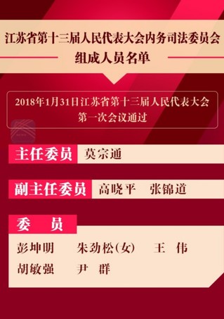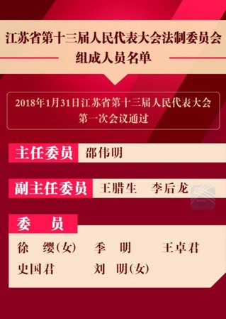 大会采用按电子表决器的方式,通过了江苏省第十三届人民代表大会法制委员会、内务司法委员会、财政经济委员会组成人员人选名单。