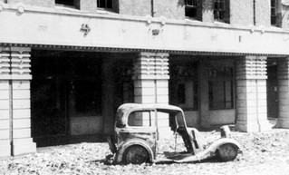 228事件台湾省专卖局台北分局前被焚毁的汽车(资料图)