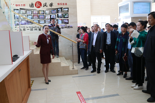 与会人员现场观摩了颍泉农商行的办公环境、文明创建氛围营造、档案整理、廉政文化长廊、楼道文化建设、大厅优质服务等创建工作开展情况。