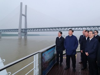 25日上午,习近平总书记驱车一个半小时,从宜昌前往荆州。在荆州港码头登上轮船,顺江而下,察看长江沿岸生态环境和发展建设情况,听取长江航运和航道治理、河势控制和护岸工程、非法码头整治等情况汇报。