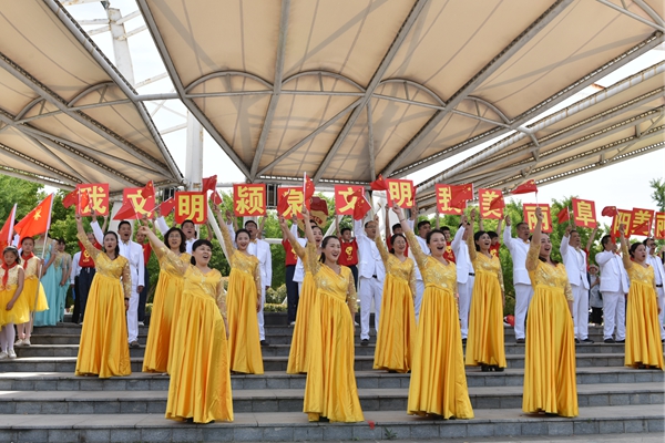 上午10点,三角洲公园团旗飘扬,热闹非凡,快闪活动在嘹亮的团歌声中热闹开场,节目形式丰富多样,不仅有歌舞《绒花》、合唱《五月的花海》、《青春颍泉》诗朗诵、街舞、独轮车还有文明创建情景剧,充分展现了青年人昂扬向上的精神风貌和青春活力。进一步呼吁广大青年积极发挥青春热情的力量,争当文明创建先行者。