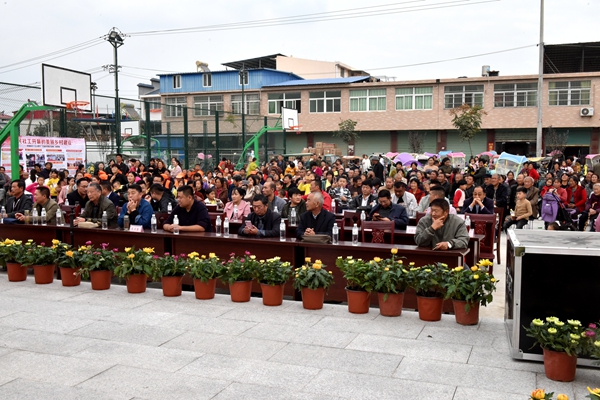 在坎河社区文化广场,村民们为群众奉献了一场自编自演的精彩节目。舞蹈、歌唱、话剧等,应有尽有,节目丰富很是热闹。欢快热闹的表演让整个文化广场充满欢声笑语,台下群众看的入神,为台上演员送上阵阵掌声。