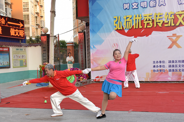为贯彻落实区委、区政府创建全国文明城市总体部署,进一步扩大创建活动的覆盖面和影响力,10月26日,由颍泉区创建全国文明城市指挥部、中共颍泉区委宣传部主办的颍泉区弘扬优秀传统文化 共建全国文明城市 文艺演出在中市街道泉源社区举行,以群众喜闻乐见的方式推动创建活动走进群众心里,融入市民生活,引发同频共振。