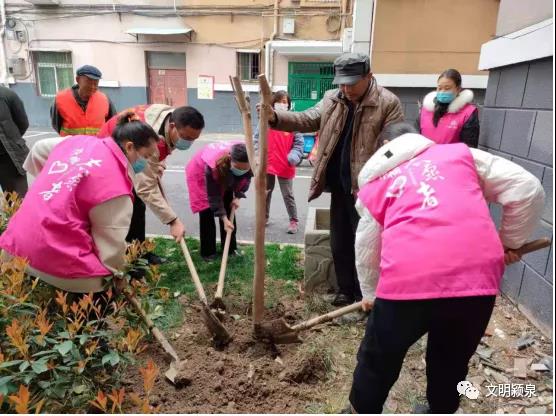 ,惠泉社区与结对帮扶单位林业局共同在辖区内开展以“爱绿、护绿、共建绿色社区”为主题的植树活动。
